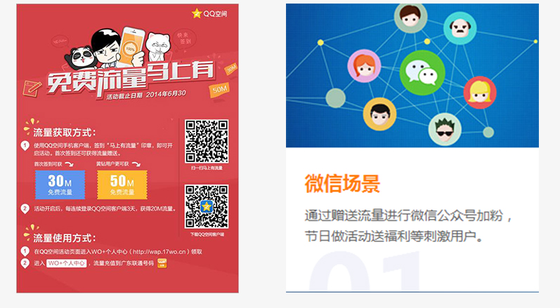 关注送流量,用户关注企业公众号,参与流量转盘等方式获取流量红包。
